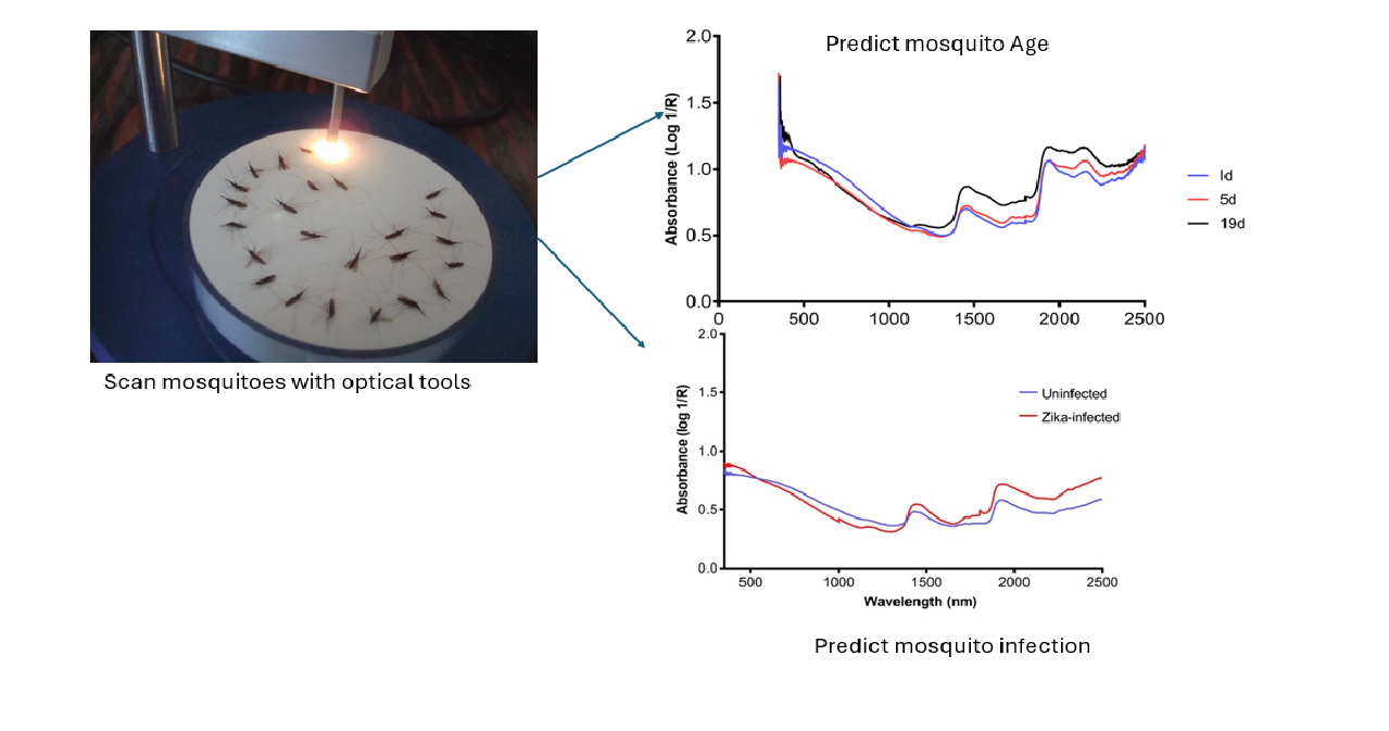 Our optical tools coupled with AI can detect pathogens in animals non-invasively through the skin. This has been demonstrated for malaria and soil transmitted helminths. To develop robust models for your use case, contact us to partner with us on this project